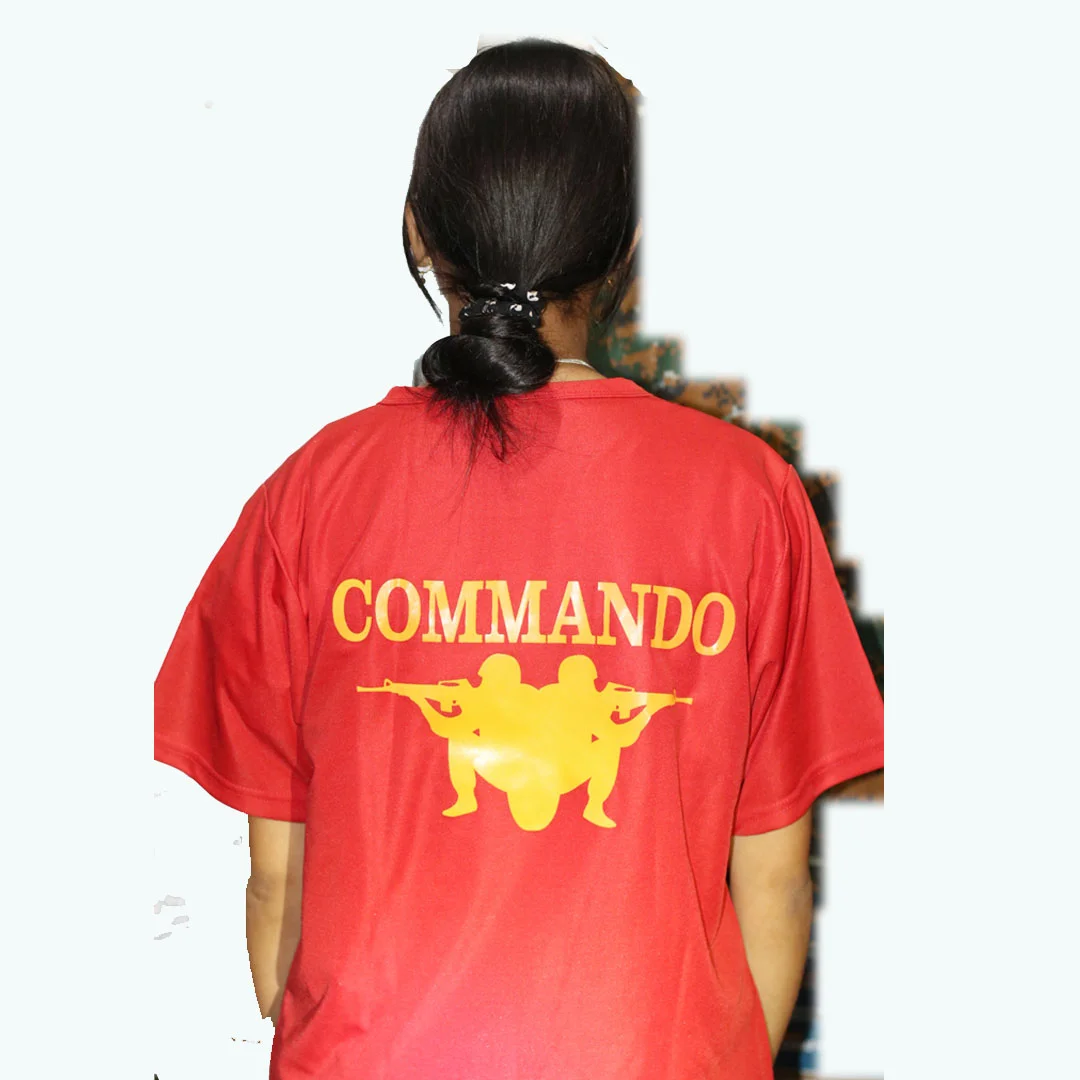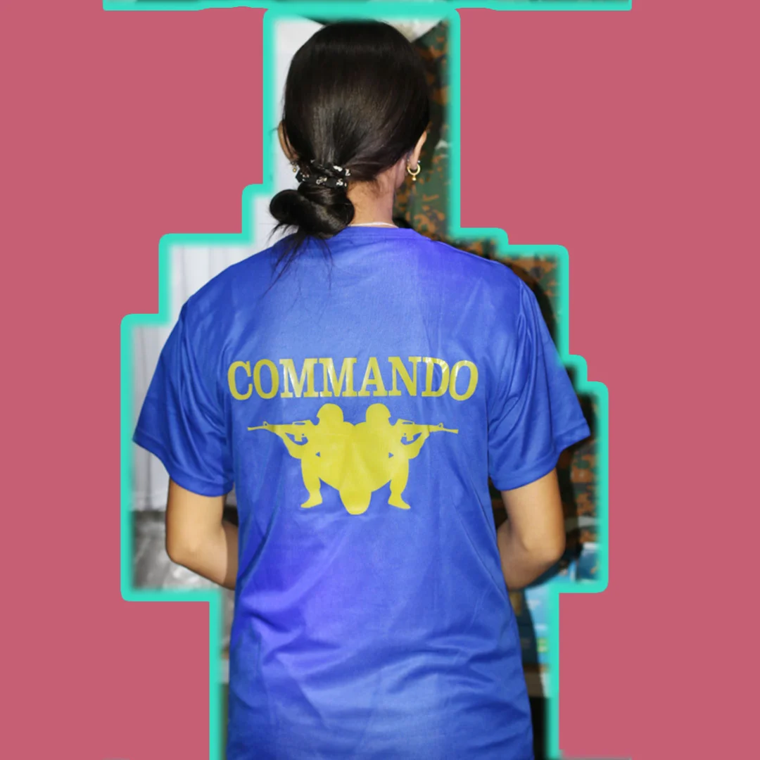 / अगाडि: सानो “Commando” लोगो रबर प्रिन्ट संग, स्टाइलिश र प्रिमियम देखिने।