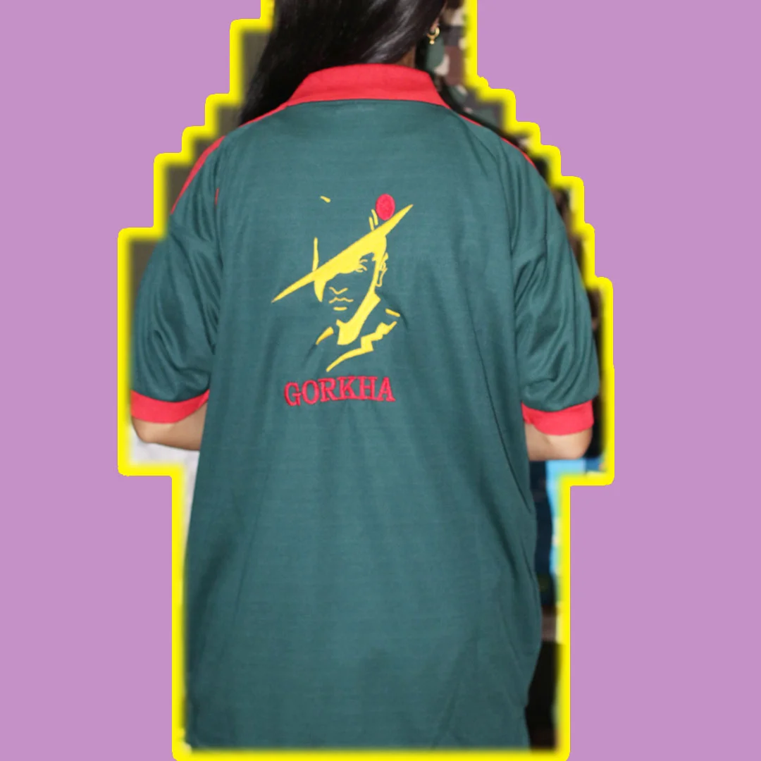 / थ्रेड माटेर गोर्खा लोगो सहितको स्टाइलिश डिजाइन।